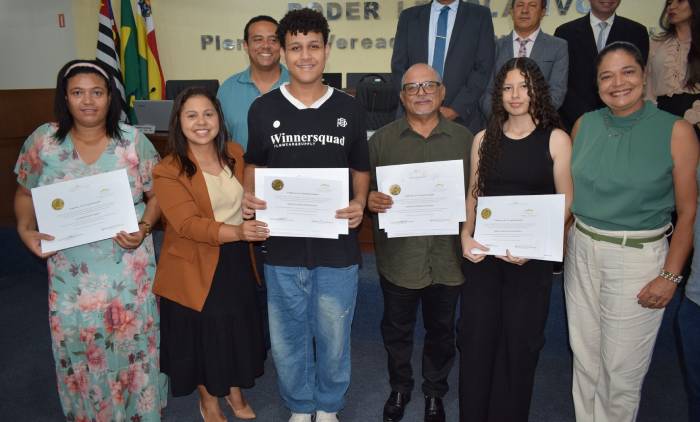 Reunida em Sessão Ordinária na segunda-feira, 6 de outubro, a Câmara de Vereadores aprovou moção de autoria da vereadora Graciane de Madureira, que manifesta congratulações à E.E. Diva Figueiredo da Silveira e aos alunos Raphael Damasceno Botelho, Victor de Souza Camilo e Maria Clara da Silva Cardoso pela destacada seleção no programa “Prontos pro Mundo”, promovido pela Secretaria de Educação do Estado de São Paulo.