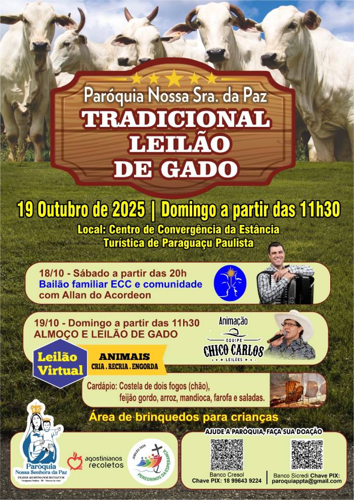 O mês de outubro será marcado por muita fé, alegria e confraternização na Paróquia Nossa Senhora da Paz. A programação reúne celebrações religiosas, momentos de devoção e eventos comunitários para todas as idades.