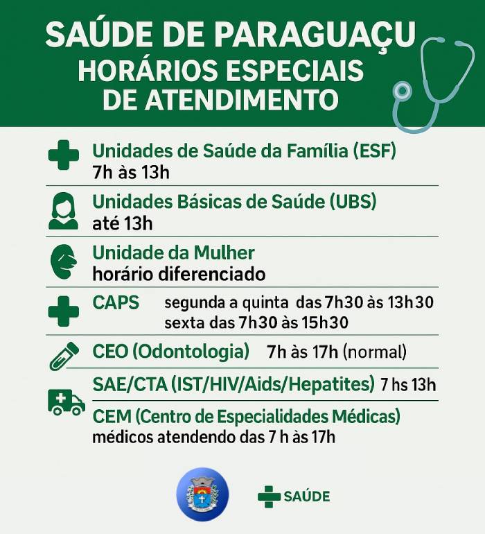 14/10/2025 - Nos postos de saúde localizados nos bairros, o atendimento acontece somente até às 13h.