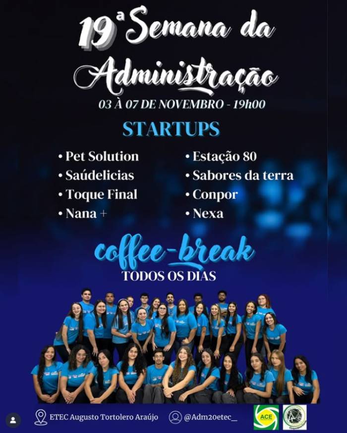 De 03 a 07 de novembro, acontece a Semana da Administração da ETEC Augusto Tortolero Araújo, em Paraguaçu Paulista. O evento chega à sua 19ª edição.