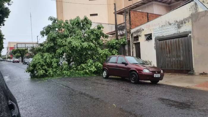Um carro foi arrastado pela enxurrada que se formou na Rua Brasil, em Tupã (SP), após a forte chuva que atingiu a cidade na tarde desta quarta-feira (5). Moradores registraram o momento em vídeos que circulam nas redes sociais.