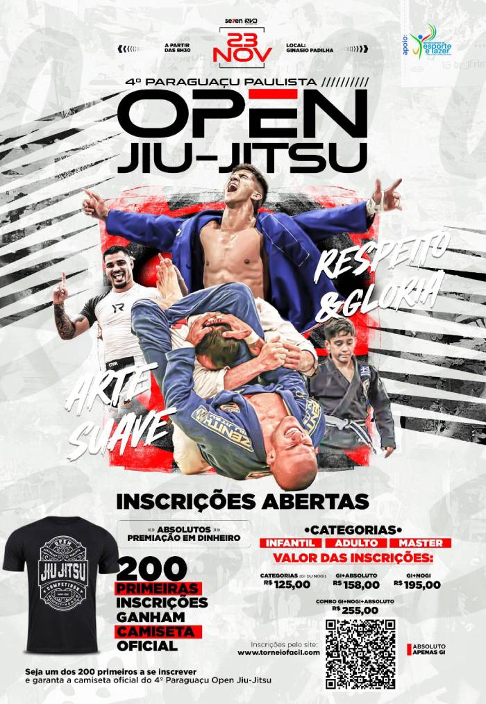 Estão abertas as inscrições para o 4º Paraguaçu Open de Jiu-Jitsu 2025. Tradição, respeito e glória devem marcar um dos maiores campeonatos da região, que acontece no dia 23 de novembro.