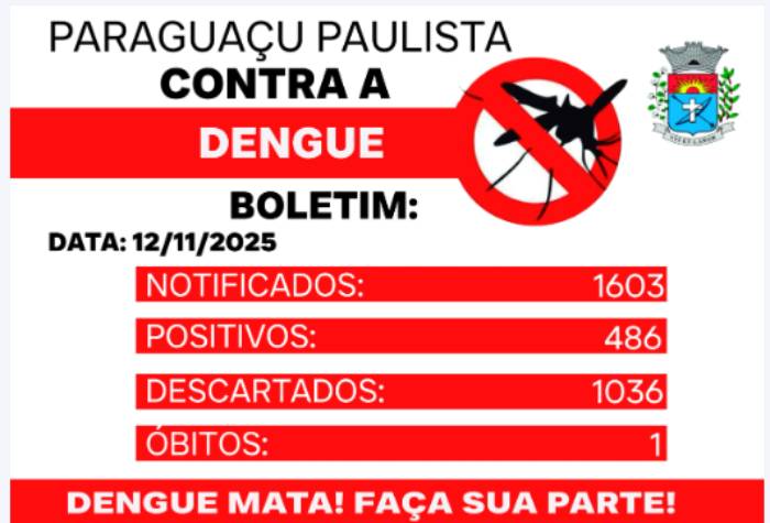12/11/2025 - Cidade conta com 486 casos positivos e um óbito pela doença desde o início do ano.