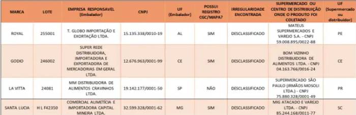 Confira as marcas e lotes inspecionados que foram considerados impróprios: