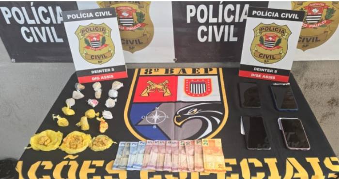 Em um dos endereços os policiais apreenderam em poder dos investigados N.A.P.D.S, 26 anos, e C.J.D.S, de 25 anos, entorpecentes do tipo “maconha” e “crack”, uma balança de precisão, valores em moeda corrente, e demais objetos de interesse à investigação. Em outro local foi apreendido “crack”, em porção fracionadas para venda, sendo também conduzidos os investigados S.L.T e M.R.D.C., ambos com 22 anos, e um adolescente de 17 anos, a sede do plantão da Central de Polícia Judiciária de Assis, onde foram autuados em flagrante pelos crimes de Tráfico de Drogas e Associação para o Tráfico de Drogas, e houve a apreensão do adolescente pela conduta infracional.