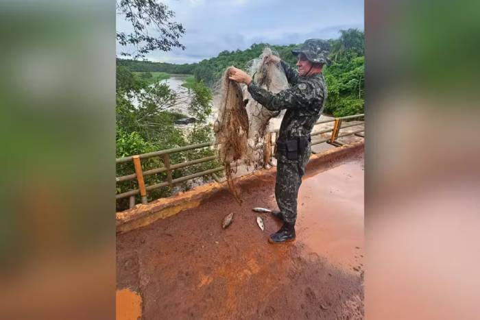 Durante patrulhamento, os policiais observaram um veículo parado em uma área considerada crítica para a pesca irregular e passaram a monitorar o local. Horas depois, cinco pessoas foram vistas saindo de uma trilha às margens do rio. Quatro delas conseguiram fugir pela vegetação, mas um homem, de 37 anos, foi abordado.