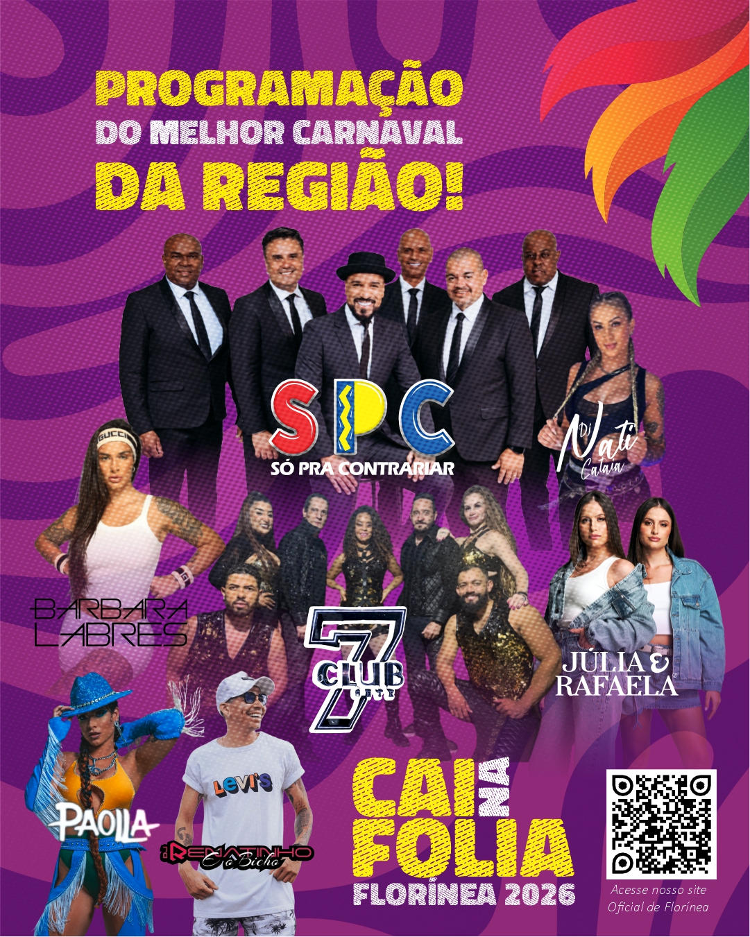 Em Florínea, o Cai na Folia terá uma mega estrutura, oferecendo conforto e qualidade aos foliões, praça de alimentação, show com o grupo Só Pra Contrariar e com artistas regionais, além de Dj’s. A festa será de 14 a 16 de fevereiro, na Praça da Matriz.