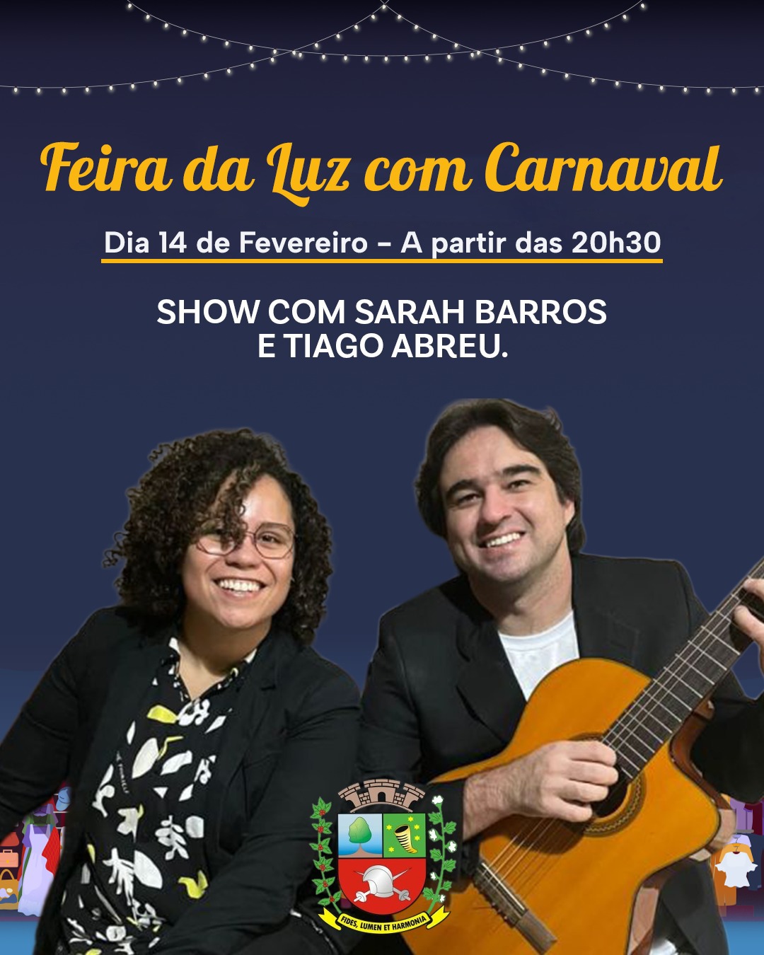 Em Lutécia, no sábado, dia 14, haverá Feira da Luz com Carnaval, a partir das 20h30, com show de Sarah e Tiago Abreu.