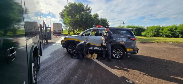 Por volta das 08h50min, a equipe TOR do 2ºBPRv, durante a Operação Impacto/Carnaval 2026, abordou um ônibus M. Benz/MPolo Paradiso DD no km 413,4 da SP-270, em Palmital/SP.