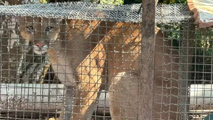 Onça-parda é resgatada após ficar presa em gaiola de sítio em Pederneiras