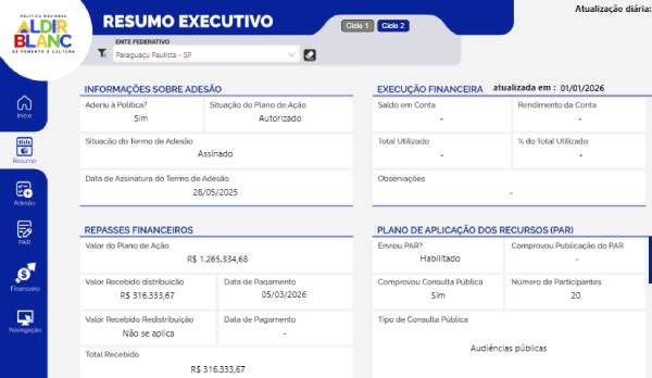 14/03/2026 - Repasse federal destinado ao Ciclo 2 da PNAB soma mais de R$ 316 mil