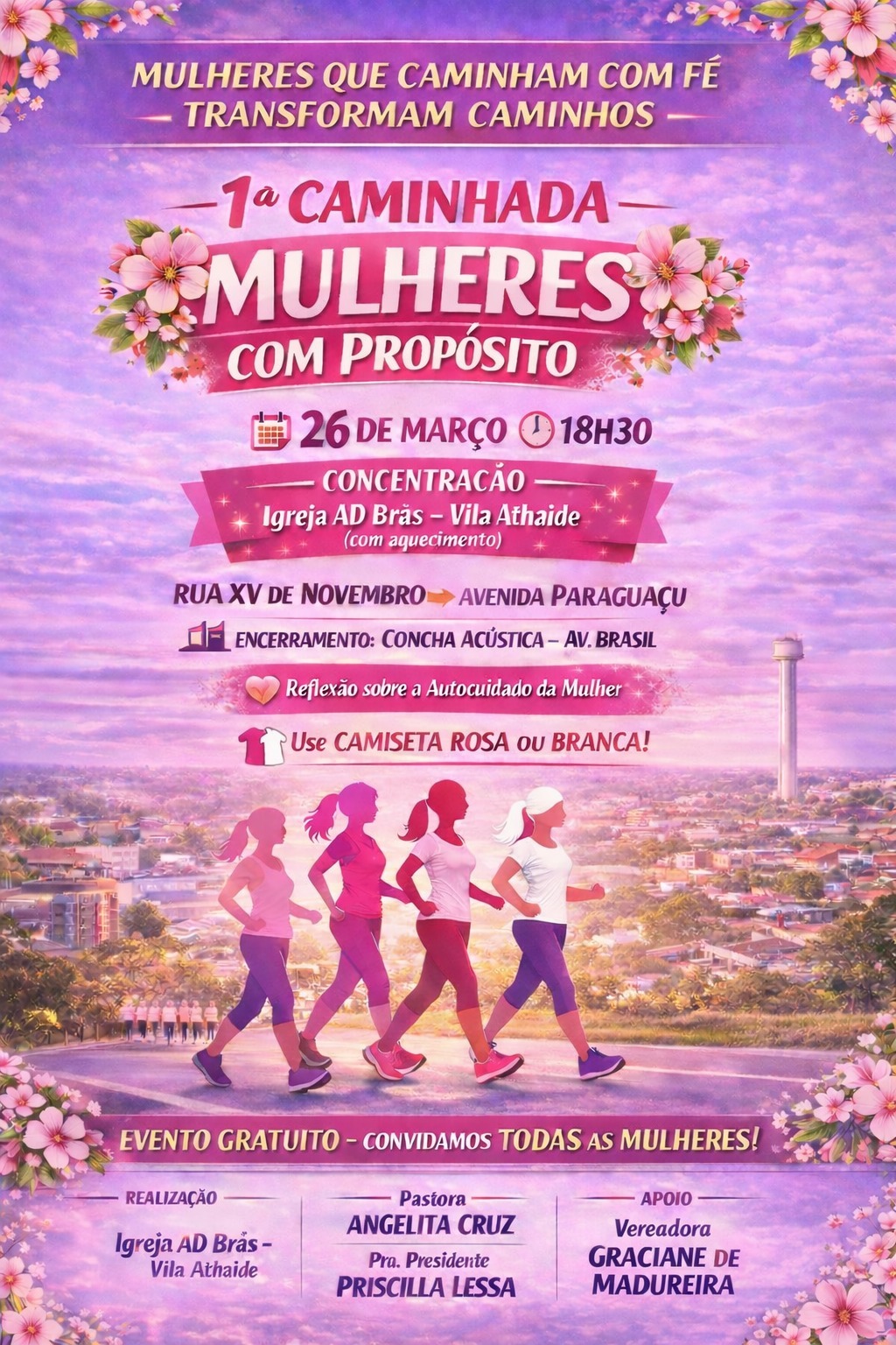 Acontece na próxima quinta-feira, dia 26, em Paraguaçu Paulista, a 1ª Caminhada Mulheres com Propósito realiza pela Igreja AD Brás – Vila Ataíde.