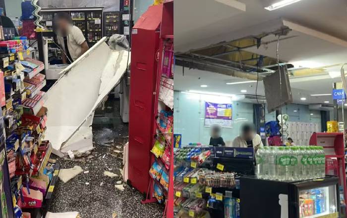 Parte do teto de um supermercado também caiu no Jardim Ferraz. A estrutura cedeu durante a chuva e atingiu um caixa, que não estava em funcionamento no momento do incidente.