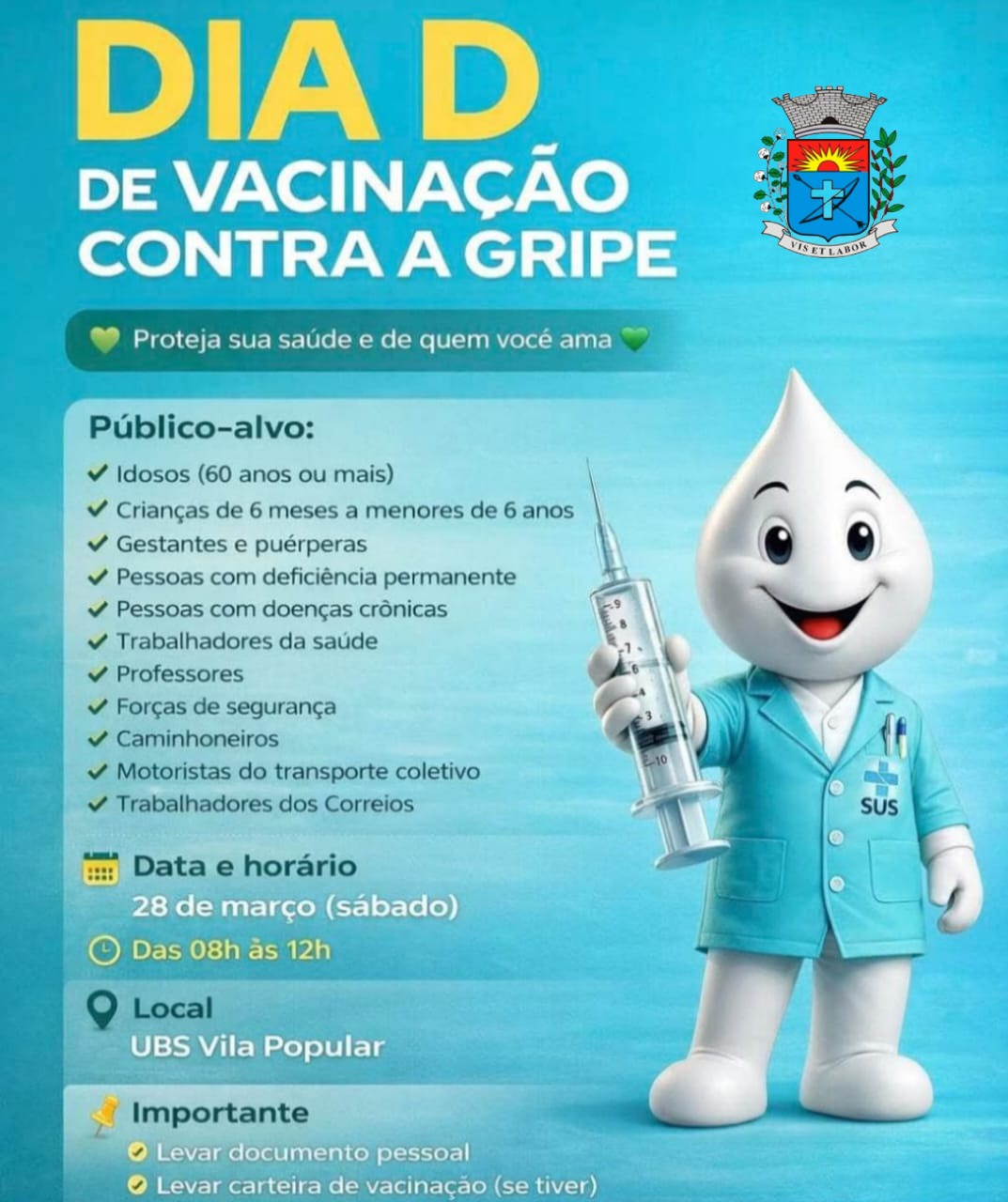 A ação acontecerá na Unidade de Saúde da Vila Popular, das 08h às 12h, com o objetivo de oferecer cobertura vacinal e proteger a população contra complicações respiratórias, internações e casos graves da doença.
