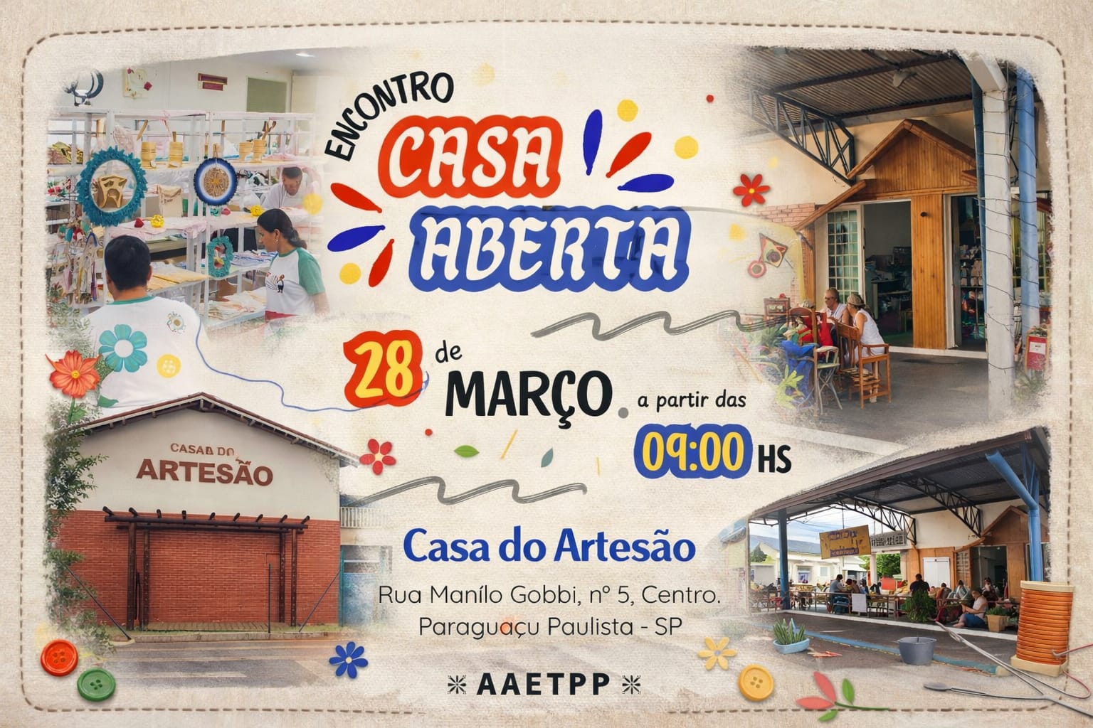 A Associação de Artesãos da Estância Turística de Paraguaçu Paulista promove, neste sábado, dia 28 de março, a partir das 9h, o encontro “Casa Aberta”, na Casa do Artesão, localizada na região central da cidade. A iniciativa propõe abrir as portas do espaço para a comunidade, criando um ambiente de escuta, troca e valorização das expressões culturais locais.