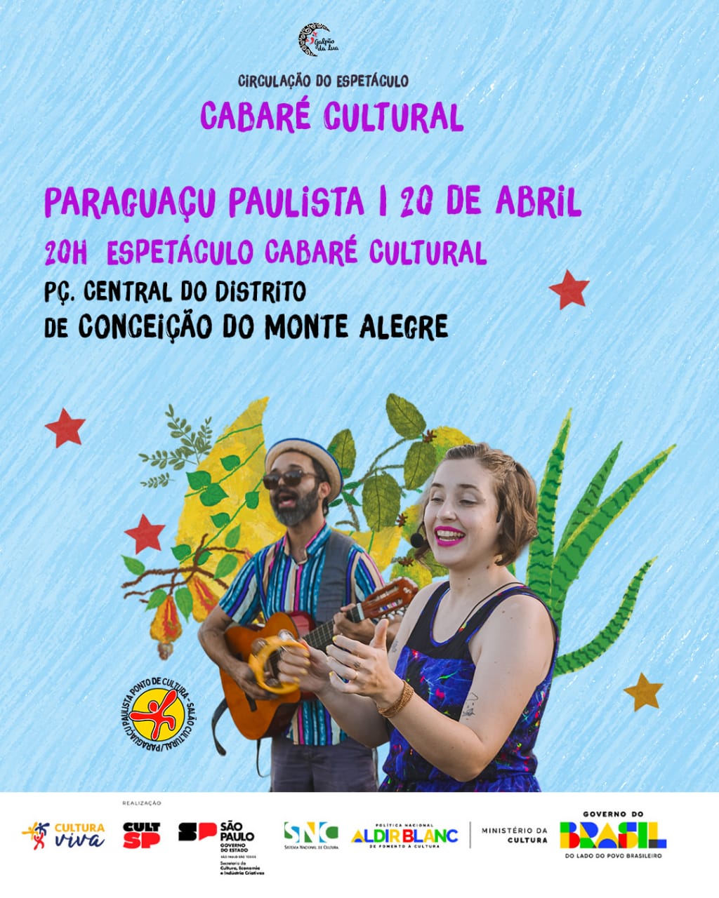 No período da noite, às 20h, a programação segue com o espetáculo Cabaré Cultural, na Praça Central do Distrito de Conceição do Monte Alegre.
