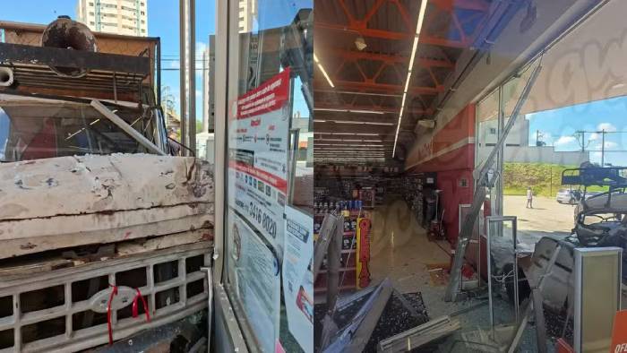 De acordo com a Polícia Militar, o motorista perdeu o controle próximo a uma rotatória e, antes de invadir a loja, a carreta ainda bateu em outros três veículos. A suspeita é de que o caminhão tenha perdido os freios.