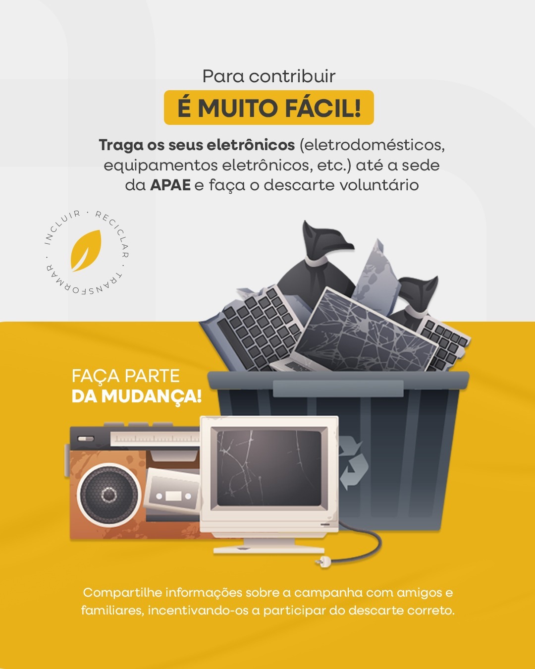 A APAE de Paraguaçu Paulista vai realizar no dia 08 de maio a Mega Campanha de Descarte de Lixo Eletrônico.
