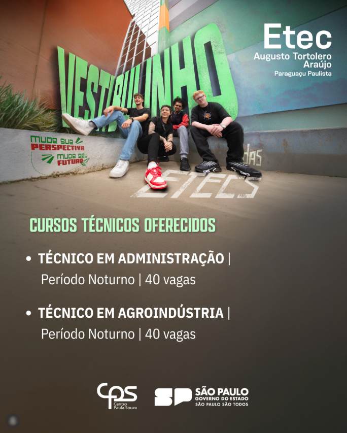 Já estão abertas as inscrições para o Vestibulinho da ETEC Augusto Tortolero Araújo, de Paraguaçu Paulista.