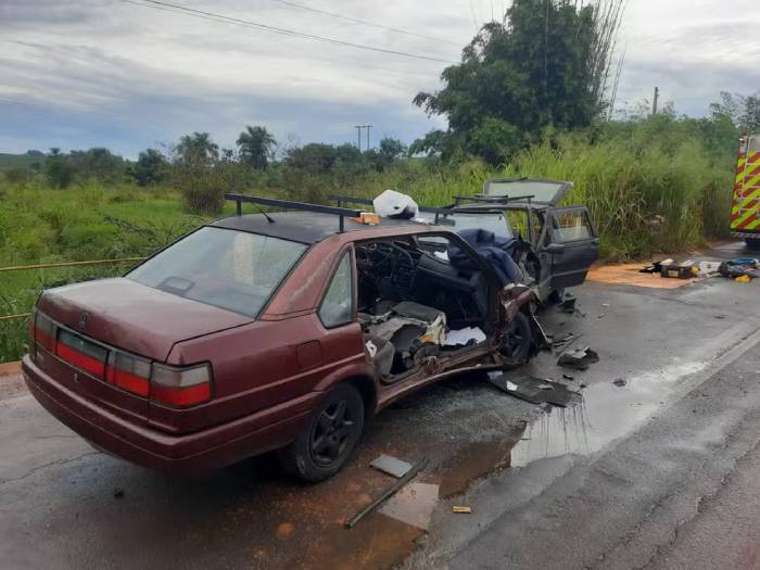 28/04/2026 - Três vítimas ficaram presas às ferragens após um dos veículos invadir a pista contrária
